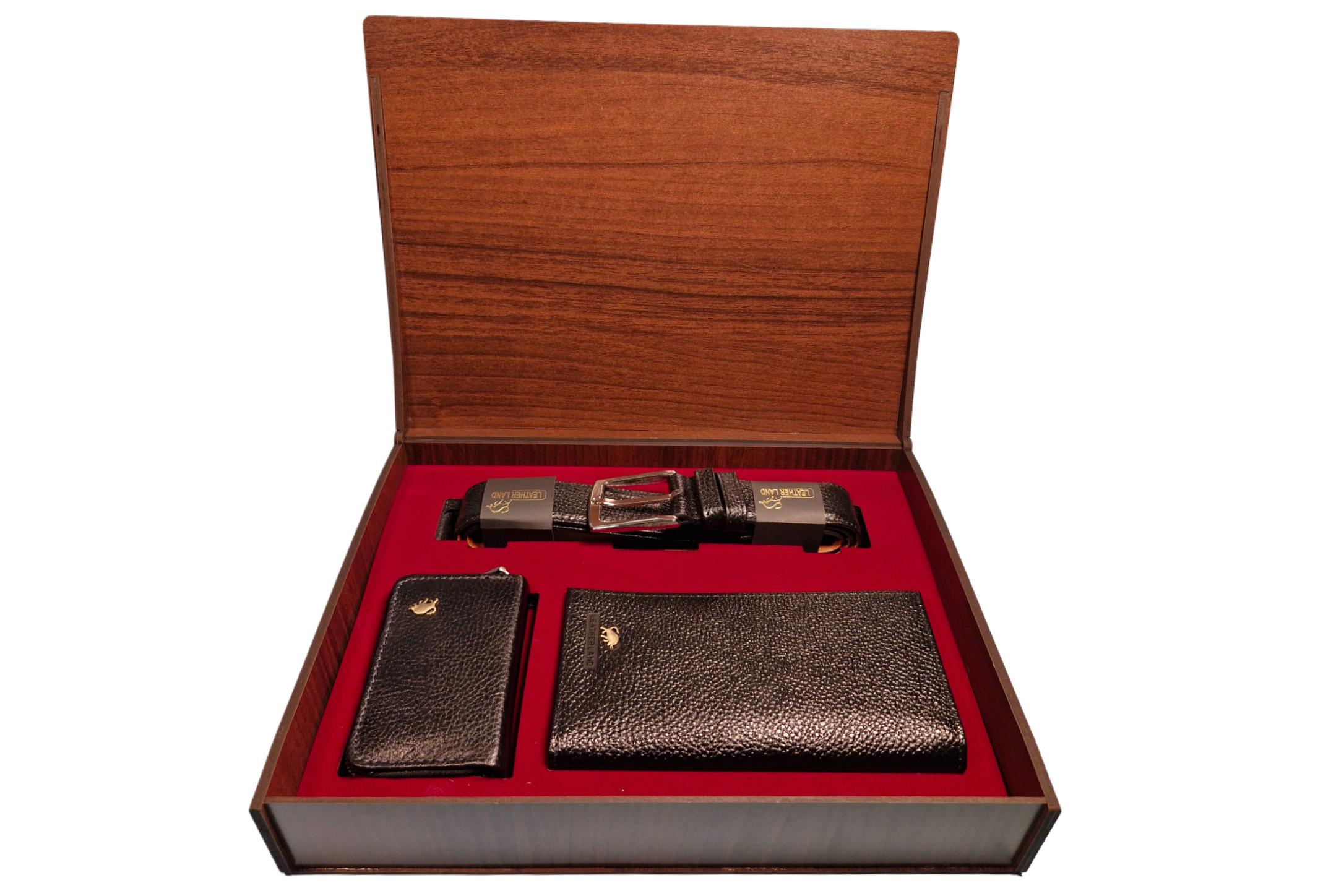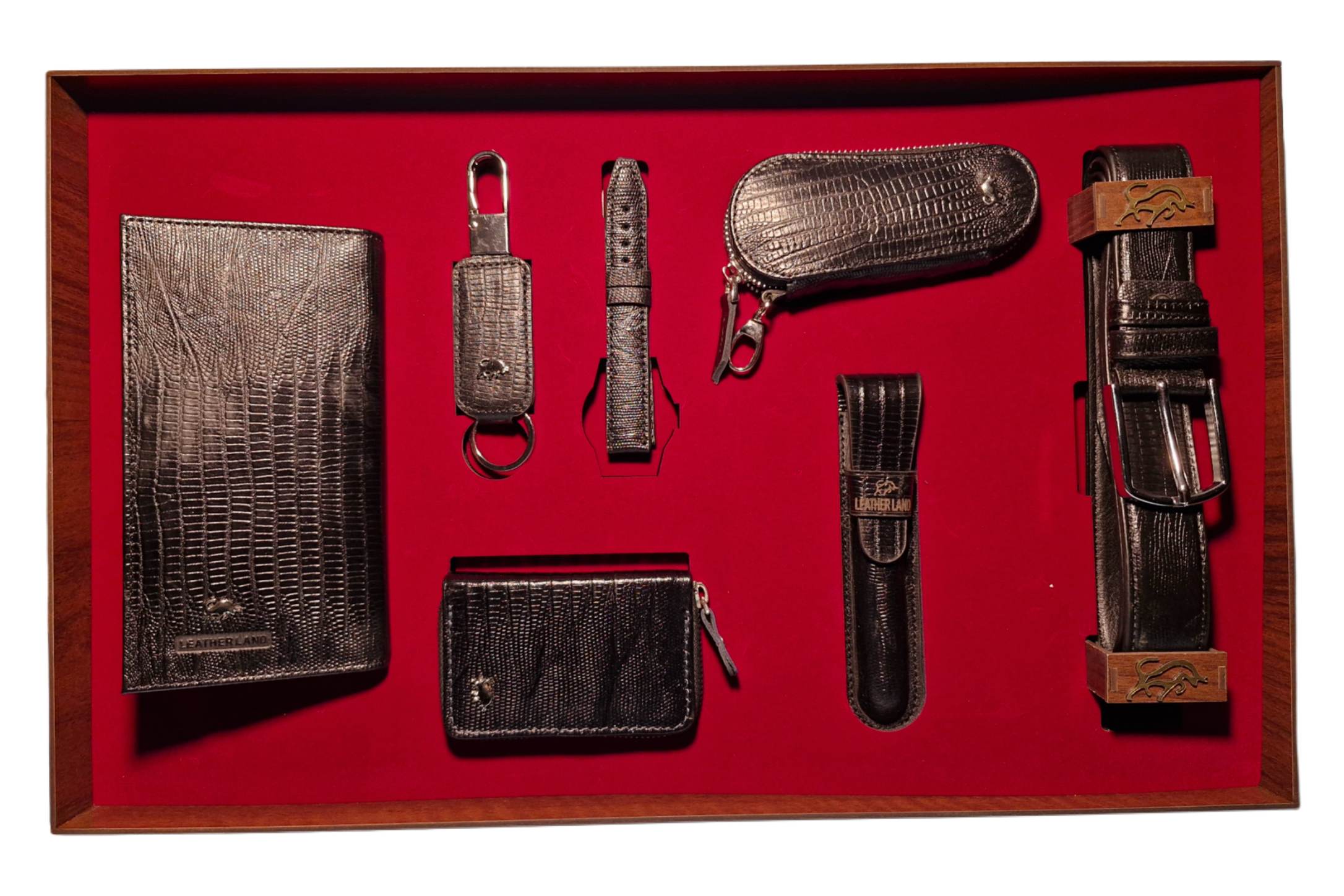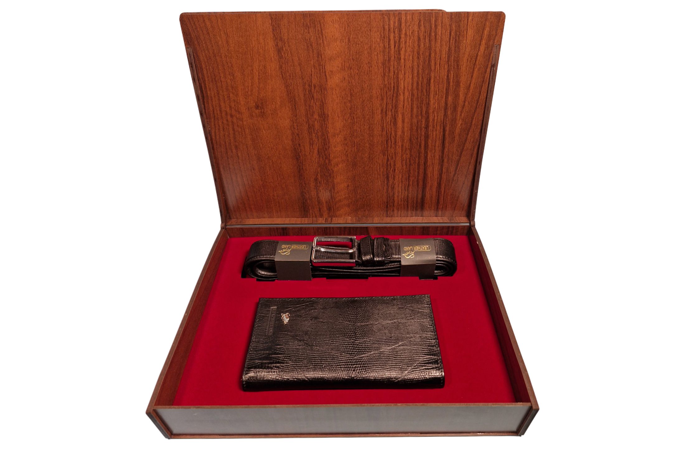 ست هدیه مردانه ۲ تکه مشکی لیزارد کیف کتی و کمربند