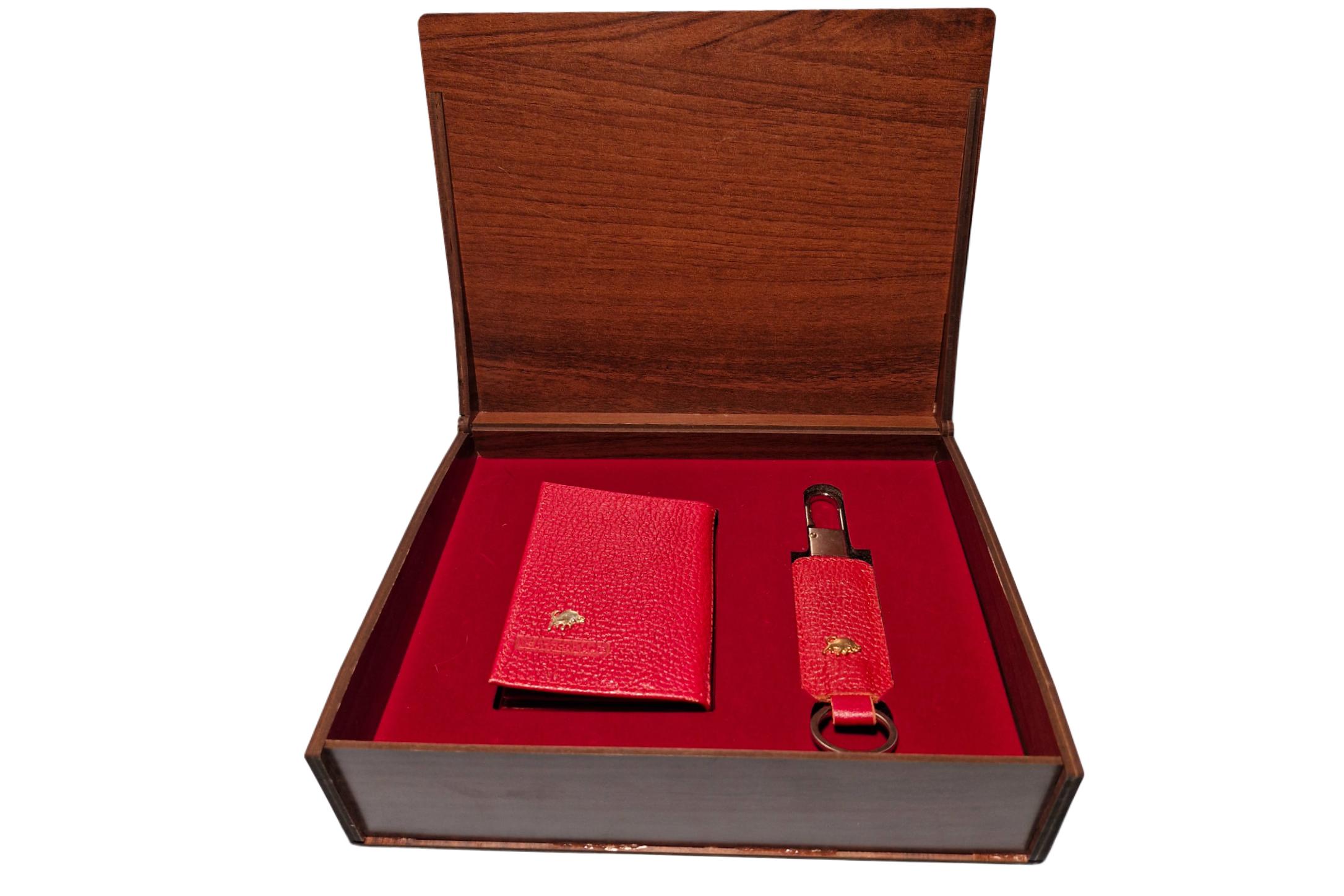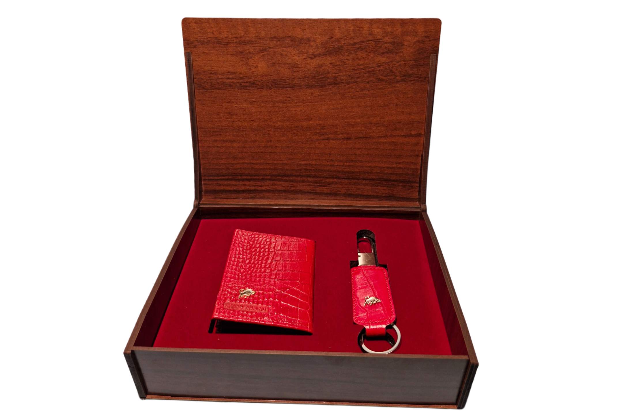 ست دو تکه جاکارتی تاشو و جاسویچی قرمز کروکو