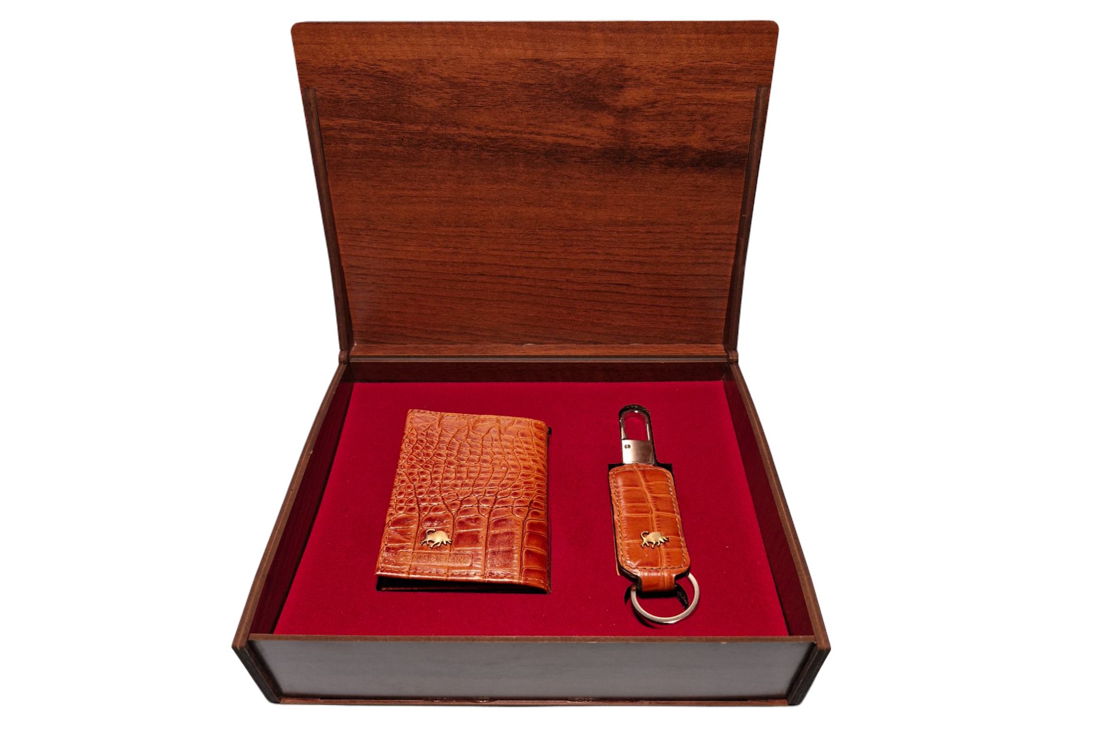 ست دو تکه جاکارتی تاشو و جاسویجی عسلی کروکو