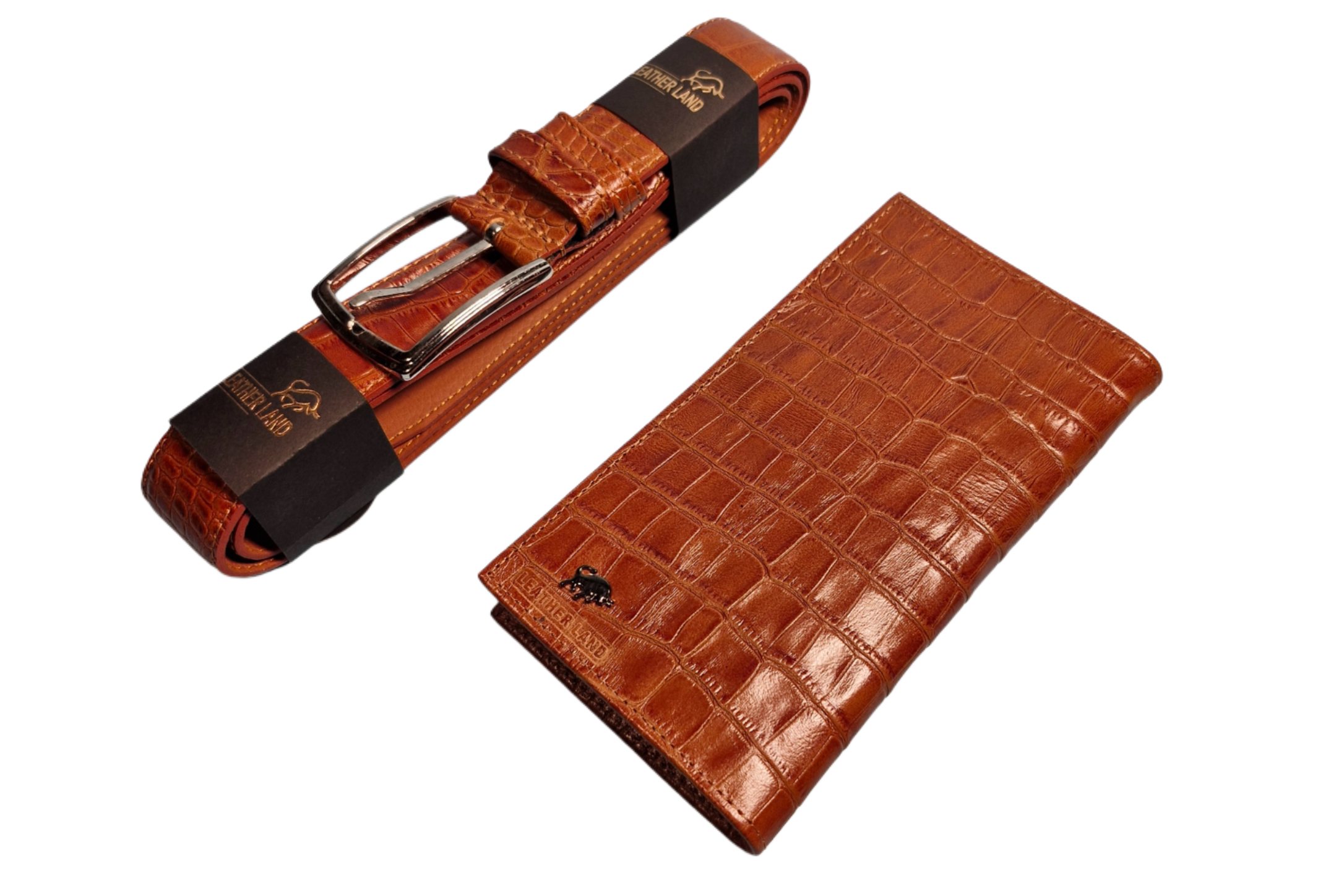 ست هدیه دوتکه عسلی کروکو کیف کتی و کمربند