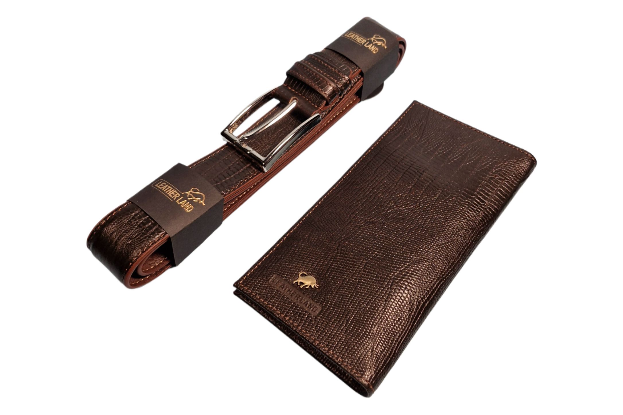ست دو تکه قهوه ای لیزارد مردانه کیف کتی و کمربند