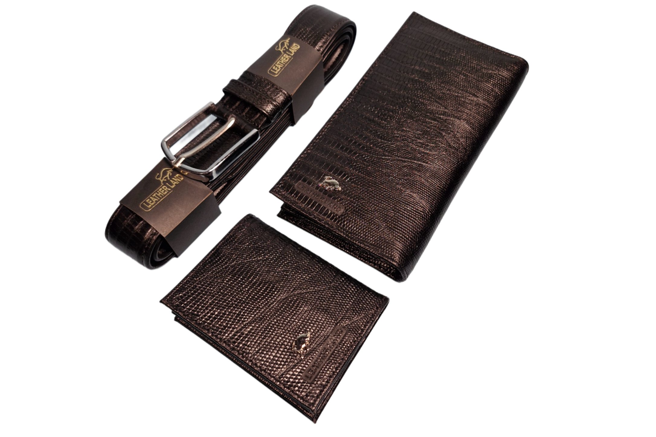 ۳ تکه لیزارد مشکی مردانه کیف پول کتی جاکارتی تاشو و کمربند