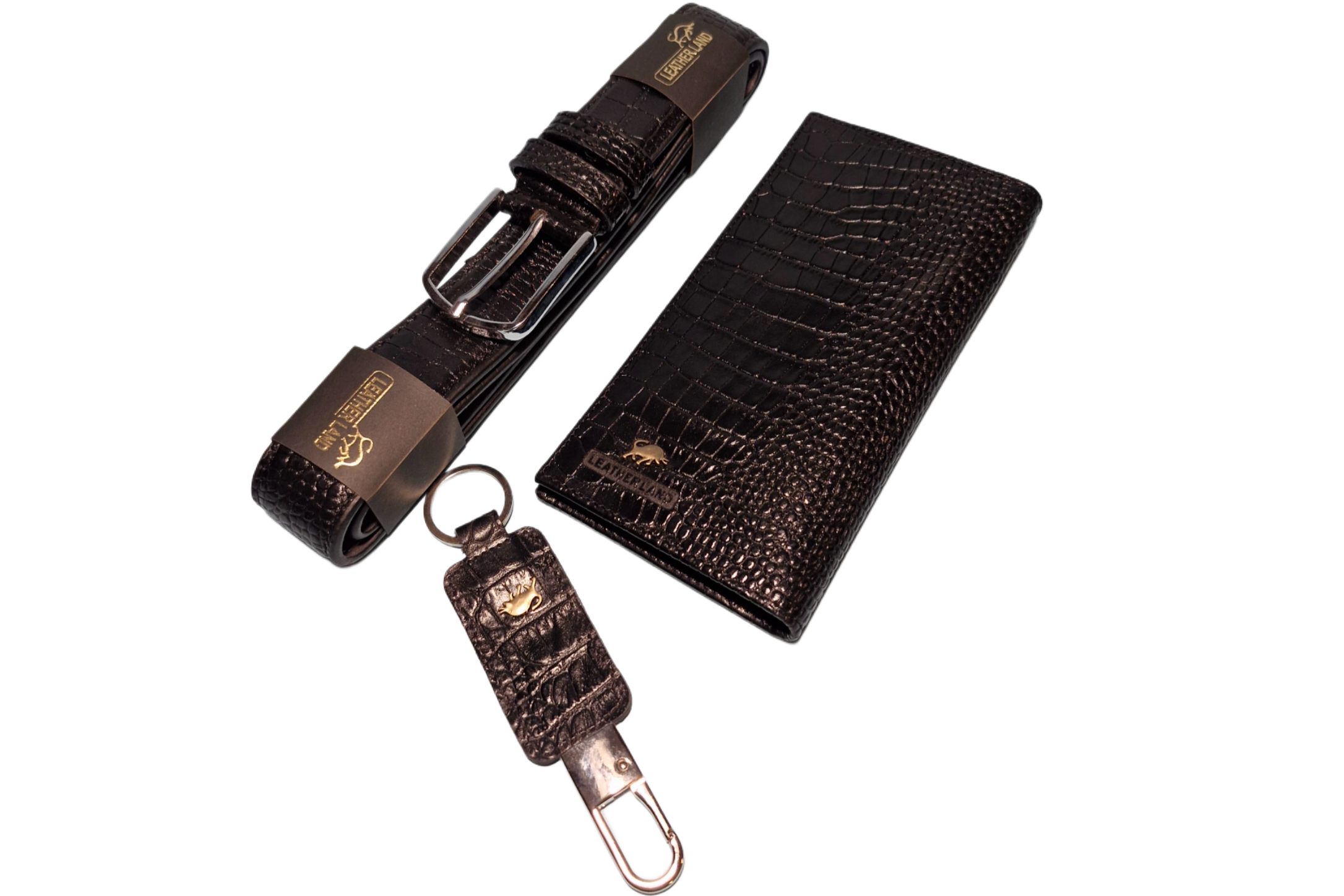 ست ۳ تکه کروکو مشکی کیف کتی کمربند و جاسویچی